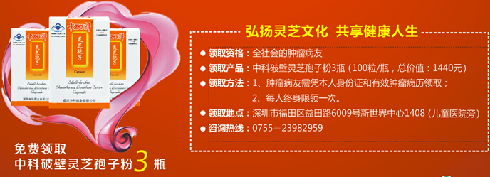 中科灵芝成立30周年来,一直致力于肿瘤防治。为了向广大市民普及中医药文化知识,特向肿瘤病友赠送灵芝孢子粉,帮助到更多的肿瘤病友,接下来的肿瘤患者可免费领取3瓶破壁灵芝孢子粉。此外,为了让更多肿瘤患者受益,所有的肿瘤病友,凭个人身份证及有效的肿瘤病历即可免费领取3瓶破壁灵芝孢子粉。