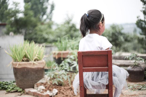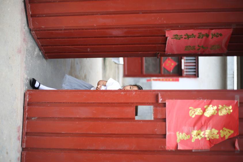 看着院子里玩耍的小朋友,娇娇害羞地躲在门后,就是不敢出门。
