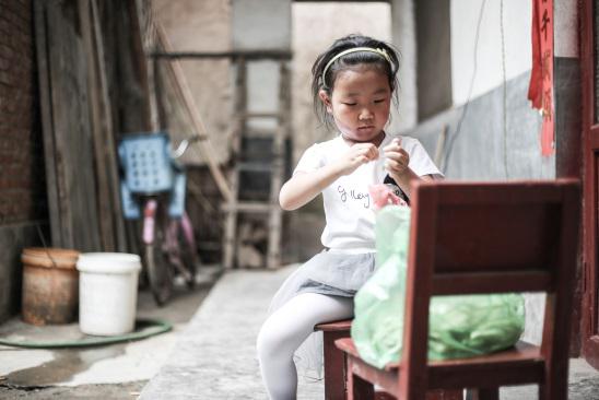 别看娇娇年纪小,懂事的她已经学会主动收拾碗筷、帮忙做家务。其中,帮妈妈摘菜是她的“拿手好戏”。