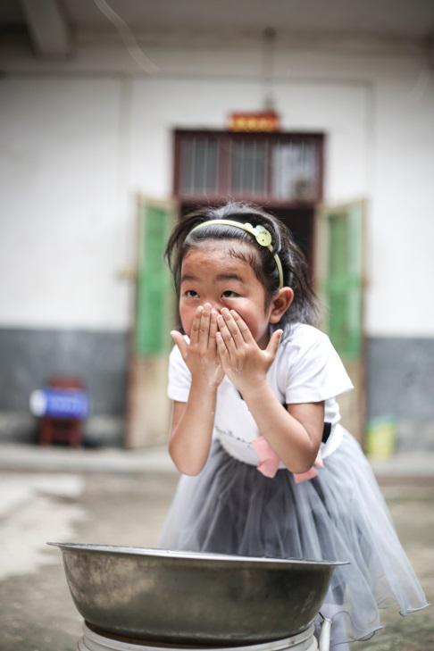 她总是很努力地洗脸,可看着胎记还是原来的样子,一次次伤心地离开。
