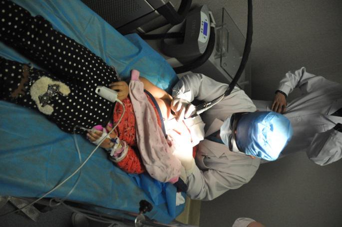 在中心,娇娇表现得非常坚强,整个治疗都很配合医生,一声都没有哭。