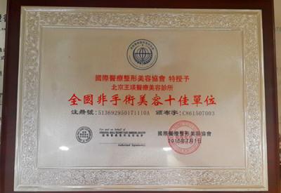 北京王瑛医疗美容诊所获全国非手术美容十佳单位称号