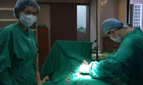 王瑛医生与台湾两岸干细胞微整形医学会理事长周遵善医师在手术室
