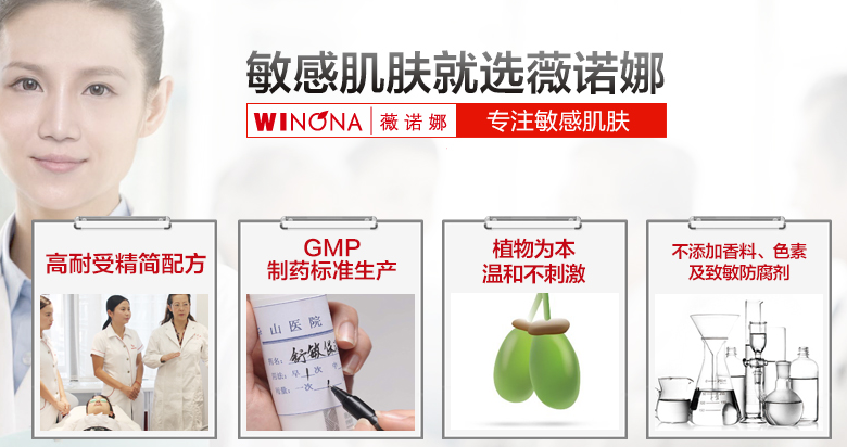薇诺娜是中国医学护肤开创者、领导者,专为敏感肌研发设计。薇诺娜医学护肤品的主要成分大多源自天然,以植物为本,采用国际尖端的科技技术,从植物王国云南寻找最高效最优质的植物资源,萃取多种天然植物精华,来作为薇诺娜医学护肤独一无二的先导性成分;不含易引起过敏的酒精、香料、防腐剂、色素;由于其成分的特殊性,制作工艺的先进性,严格按照GMP标准生产,具有辅助治疗和护肤的作用。因其安全性、有效性受到全国1800家知名医院、3000位皮肤科医生的一致推荐。