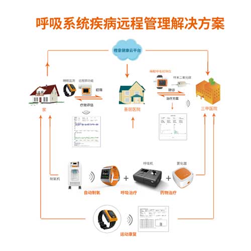 记者注意到,随着人口老龄化、大气污染等条件变化,呼吸系统疾病已成为我国最常见、高发的疾病,卫生部等15部委联合印发《中国慢性病防治工作规划(2012—2015年)》,将慢性呼吸系统疾病与心脑血管系统疾病、恶性肿瘤、糖尿病一起纳入国家级综合防治计划。橙意家人“呼吸系统疾病远程管理解决方案” ,正是依托于公司研发系列远程医疗产品与橙意云平台,立足于基层卫生服务机构,联动区域内各层级医疗联合体,将患者、基层医院、三甲医院紧密连在一起,患者可在基层医院使用便携式远程医疗设备,实现对呼吸疾病的初筛,将需要治疗的中重度患者筛出转诊至三甲医院治疗,治疗后可以随时在基层医院或家庭检测,进行疗效评估,所有数据都存储于“橙意云平台”,实现三方共享。这与国家慢性病防治的分级诊疗政策不谋而合。