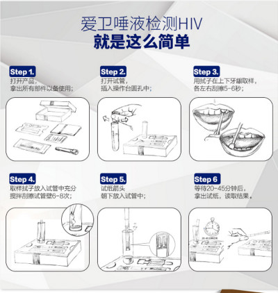 爱卫推出唾液检测艾滋病毒抗体的试纸,无须扎针抽血,用拭子取样口腔渗出液,然后放入试剂中等待20分钟,即可看到是否感染的结果。这种方式无创伤、不疼痛,在家随时能检测,既安全又隐私。
