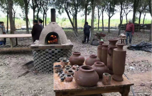 树木间,有来自遥远英伦的友人史密斯先生带来英国本土材料,亲自示范,一丝不苟,做成森林学院独有的英伦面包炉,别具一格。