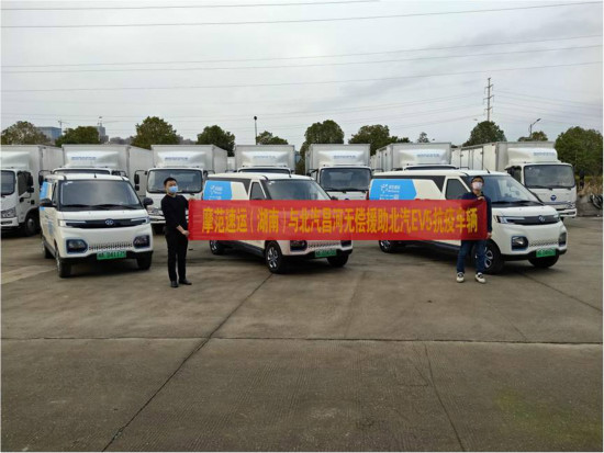 2月2日,北汽昌河响应集团号召,第一时间将24辆捐赠的北汽EV5防疫物资全封闭运输车发运至湖北、湖南、河南、广东、浙江、北京等疫情严重区域,及时支援一线医院后勤物资运输;2月8日,向河北沧州市政府紧急交付167辆北汽EV5公共卫生专用车,助力提升基层公共卫生防疫应急和服务能力;在携手摩范速运的公益行动中,已投入百余台北汽EV5供抗疫一线无偿使用,累计运输抗疫及民生物资近千吨,行驶里程近20万公里。