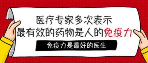 此次疫情目前还没有特效药,患者只能积极配合治疗激发自身免疫力击退病毒,而且有的人感染,有的人安然无恙,除去距离问题,其实拼的还是免疫力。所以医疗专家多次倡导我们平时要做注重增强自身免疫。