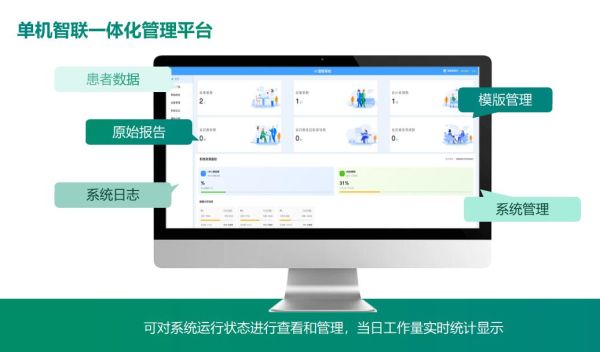 统一管理平台集中监控所有接入设备运行状态,当日检查量、成功率、故障率实时统计,助力医院精细化运营与绩效考核。